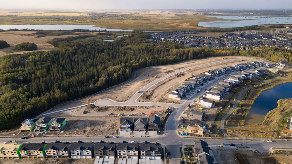 Welcome to this stunning walkout home backing onto lush forest in the sought-after community of Kinglet by Big Lake in West Edmonton, just minutes from Lois Hole Provincial Park and scenic natural trails. Designed with both style and functionality in mind, this home features an impressive tandem FOUR CAR garage, a bright open-to-below floor plan filled with intentional upgrades, and beautiful views of the surrounding greenery. The main floor includes a private office/den, perfect for working from home, along with a spacious living area ideal for entertaining. The kitchen is complemented by a convenient butler’s pantry for additional prep and storage space. Enjoy outdoor living with a full-width rear deck spanning the back of the home, featuring both a covered section and a sun deck overlooking the large private yard and forest backdrop. The walkout basement offers endless potential and direct access to the backyard. Located in one of West Edmonton’s most scenic new communities, this home combines modern design, incredible garage space, and a peaceful natural setting.