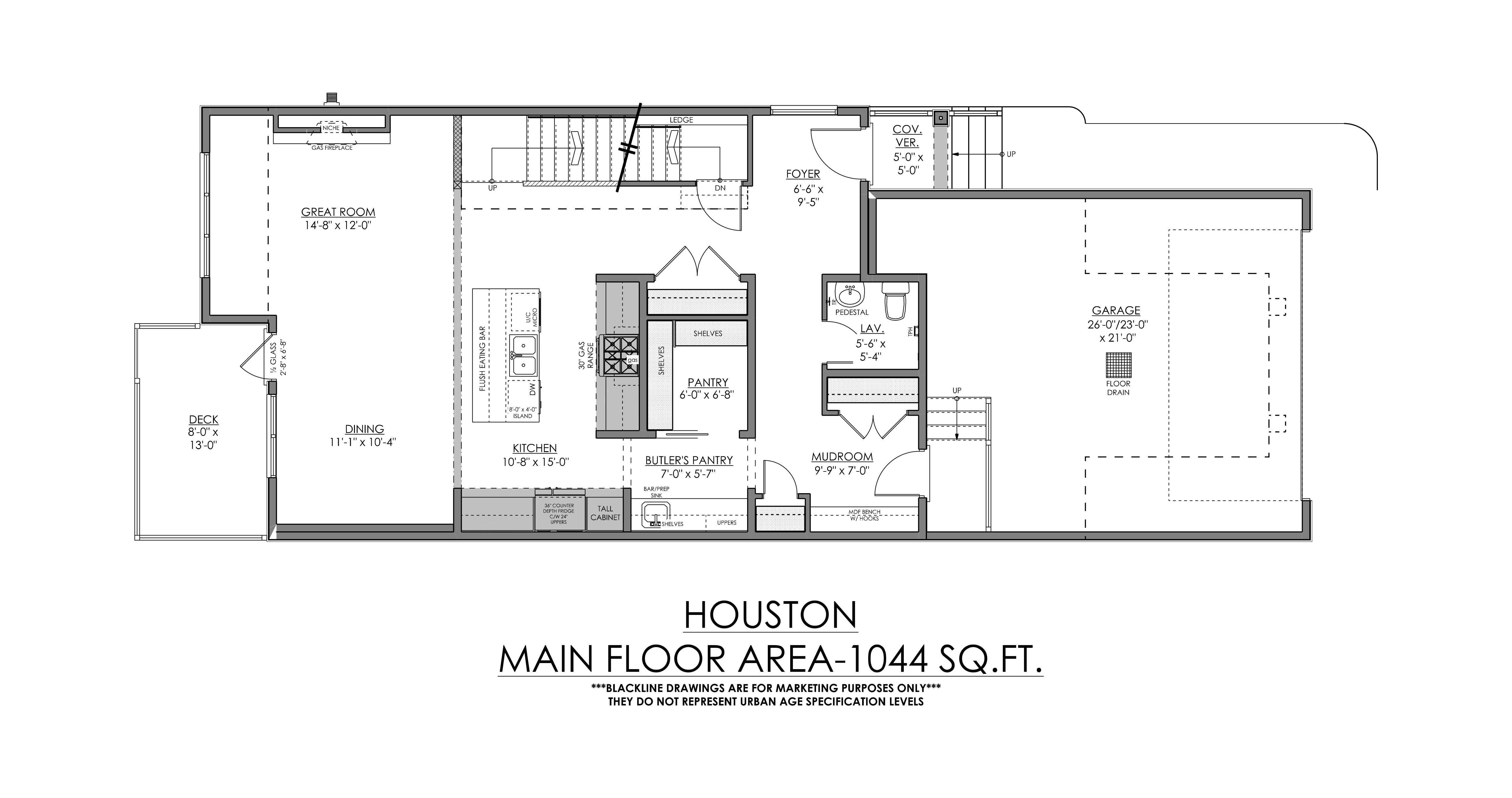 The Houston is designed for families who want elevated everyday living paired with thoughtful functionality. The main floor features an open and inviting layout where the kitchen, dining area, and great room come together seamlessly. The kitchen includes a large flush-finish island, generous counter space, and both a walk-in pantry and a dedicated butler’s pantry, creating exceptional storage and prep space. The great room centres around a beautifully placed fireplace, while the dining area opens to the rear deck, adding even more room for entertaining.